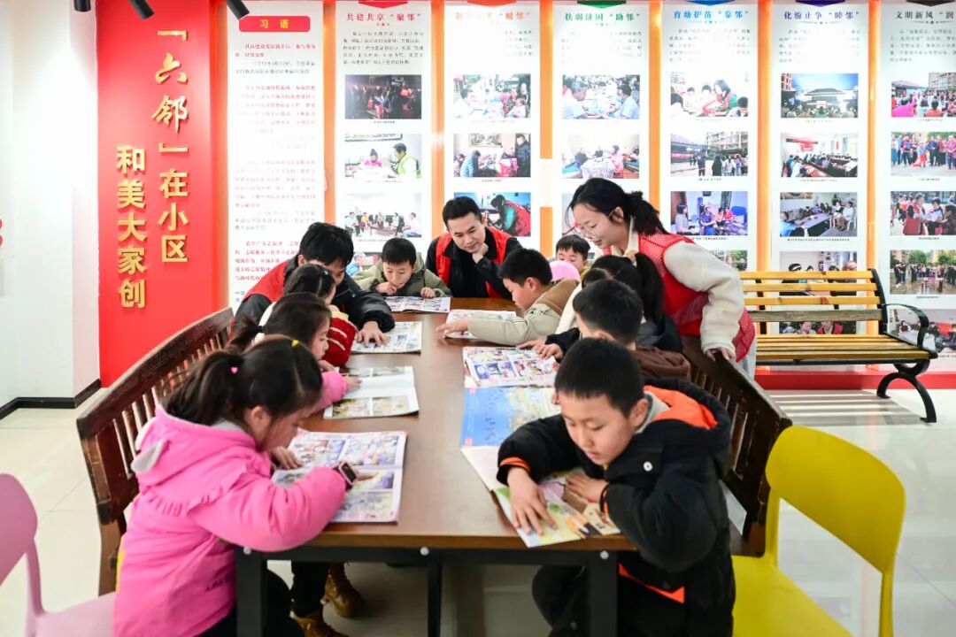 志愿者在广场名阁小区新时代文明实践点为小朋友开展寒假作业辅导。(杨云 摄)