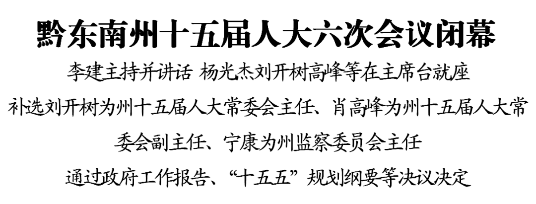 黔东南苗族侗族自治州第十五届人民代表大会第六次会议圆满完成各项议程,于1月23日上午在凯里胜利闭幕。