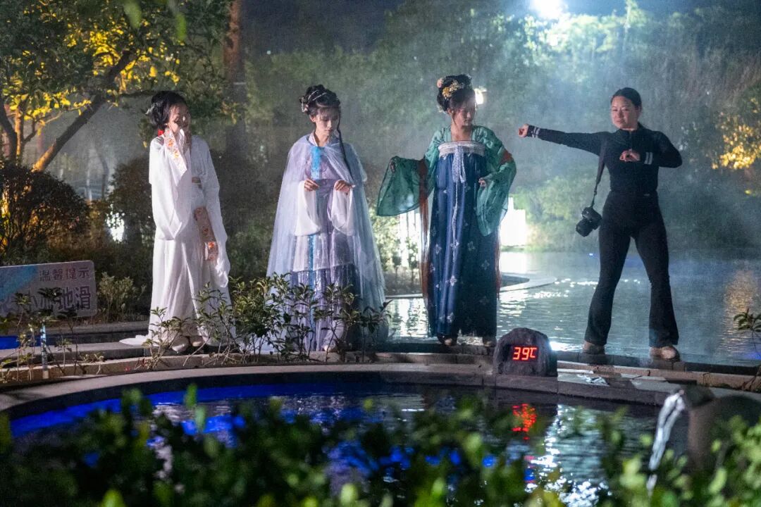 身着精美汉服的游客们,衣袂飘飘,或淡雅如仙,或华丽似梦,在思州盐井温泉的水汽中,宛如从古代走来的仙子。游客身上的精致发簪、飘逸的衣带,与温泉周边的自然景色相得益彰。翠绿的树木、娇艳的花朵映衬着汉服上的多彩图案,而温泉池中升腾起的热气,更为这画面增添了几分朦胧的美感,与温泉休闲文化相互碰撞,为游客带来了独特的身心享受。