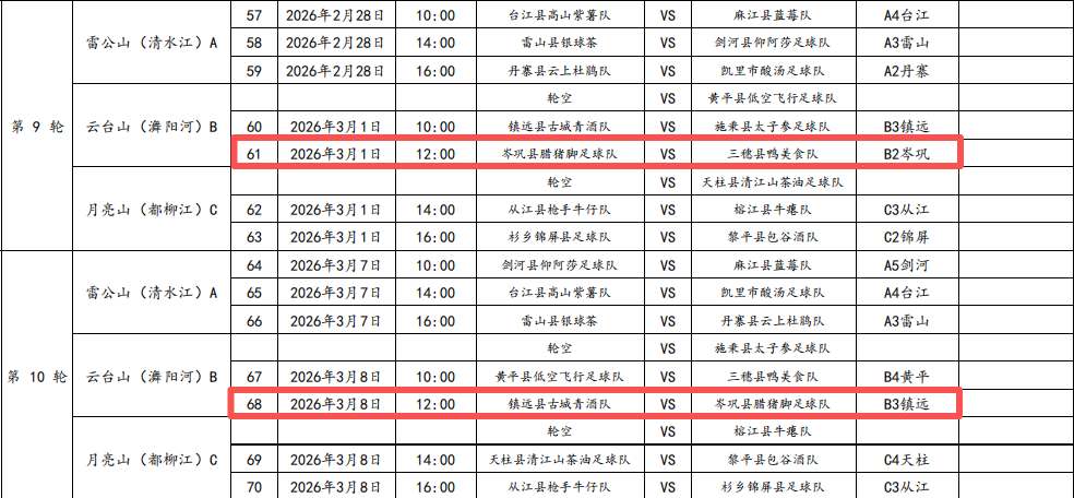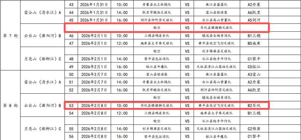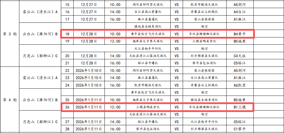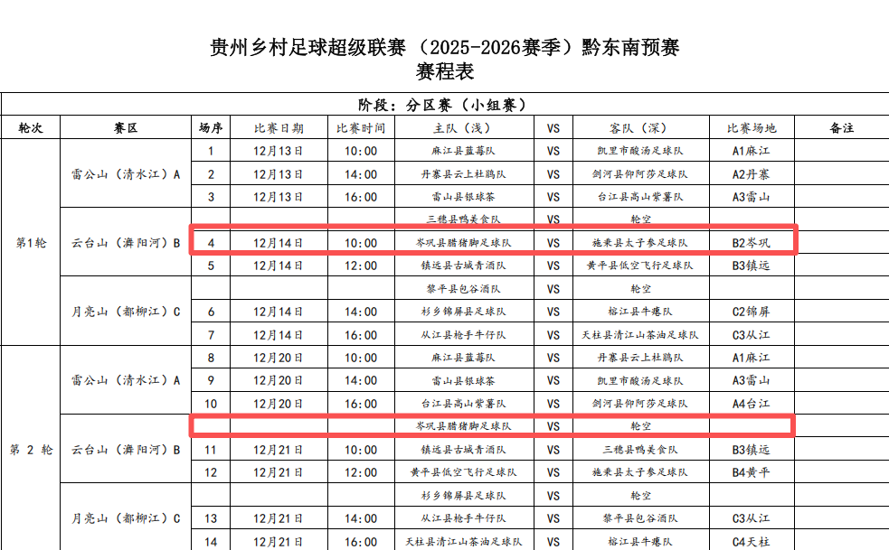 贵州乡村足球超级联赛(2025-2026赛季)黔东南预赛赛区安排及赛程表